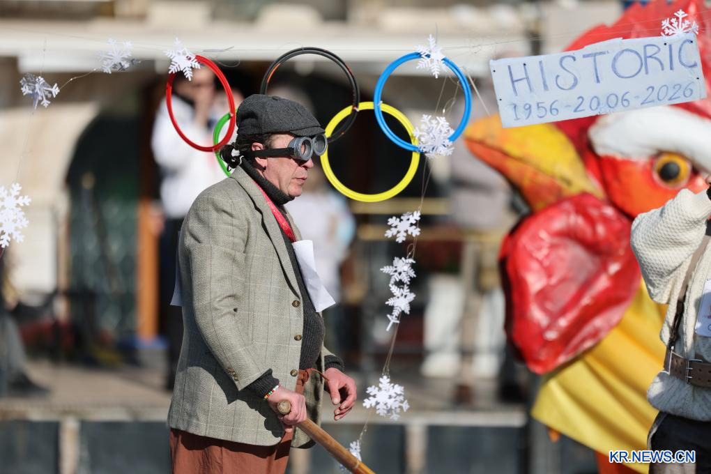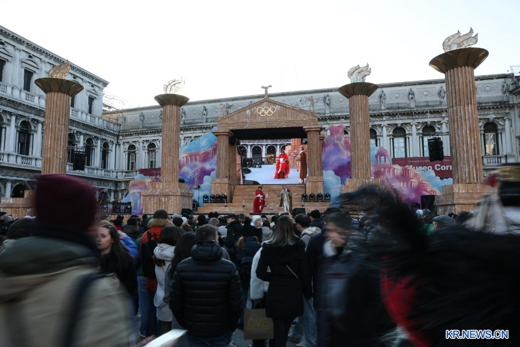 [신화망 베네치아 2월 3일] 2026 밀라노·코르티나담페초 동계올림픽 개막을 나흘 앞둔 지난 1일, 이탈리아 베네치아에서 올림픽을 테마로 한 화려한 수상 퍼레이드가 펼쳐졌다.