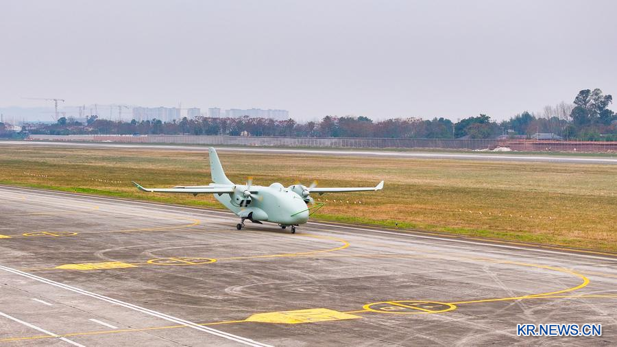 [신화망 베이징 2월 4일] 중국우주항공과학기술그룹(CASC) 제11연구원이 연구제작한 세계 최초 하이브리드 동력 무인 수송기 '차이훙(彩虹) YH-1000S'가 최근 충칭(重慶)시 량핑(梁平)구에서 첫 시험비행에 성공했다.
