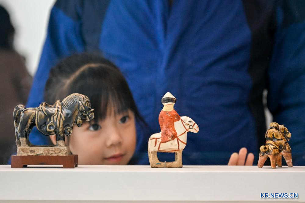 말을 주제로 한 전시회가 4일 상하이박물관 인민광장관에서 열렸다. 간쑤(甘肅)성박물관, 간쑤성문물고고연구소, 셴양(咸陽)박물원, 상하이박물관 소장품 중 말 관련 문물 16점(세트)이 전시됐다.