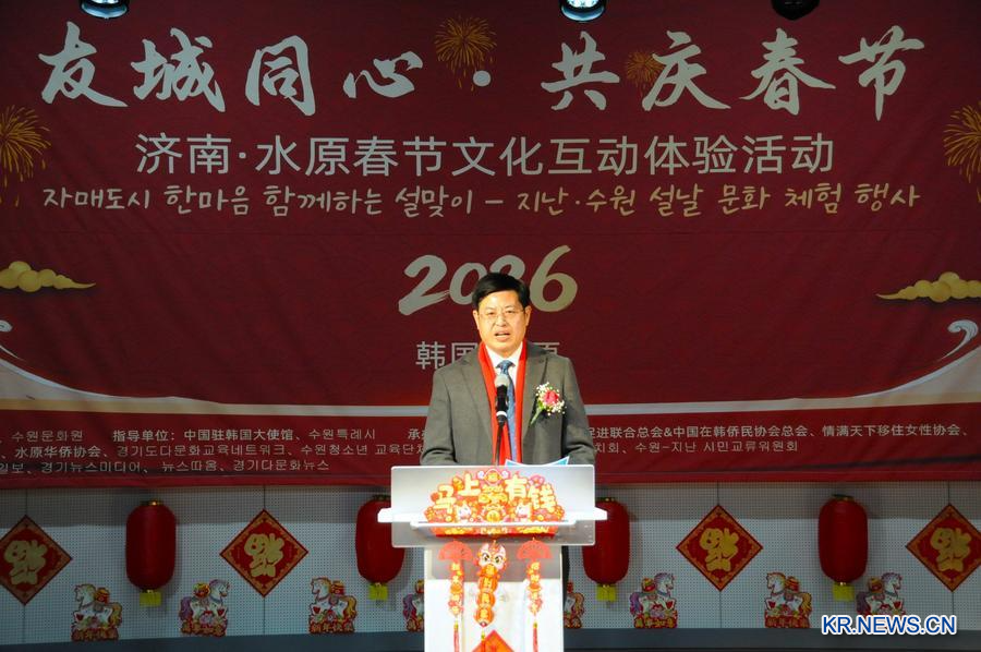 [신화망 서울 2월13일] '자매도시 한마음 함께하는 설맞이-지난(濟南)·수원 설날 문화 체험 행사'가 8일 경기도 수원시에서 열렸다.