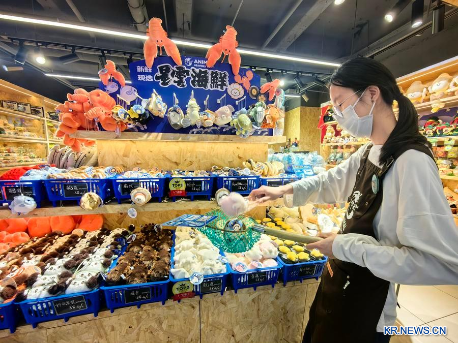귀여운 봉제인형으로 제작된 성게, 바닷가재, 굴, 가리비 등이 플라스틱 바구니에 담겨있고 소비자는 이를 직접 '잡아' 계산한다. 일종의 몰입형 구매 방식이다.