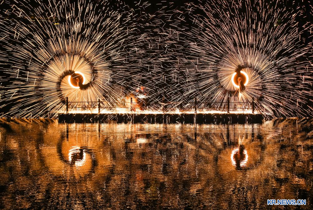 춘절(春節·음력설)을 맞아 중국 각지에서 타철화(打鐵花) 공연이 펼쳐지며 명절 분위기를 고조시키고 있다.