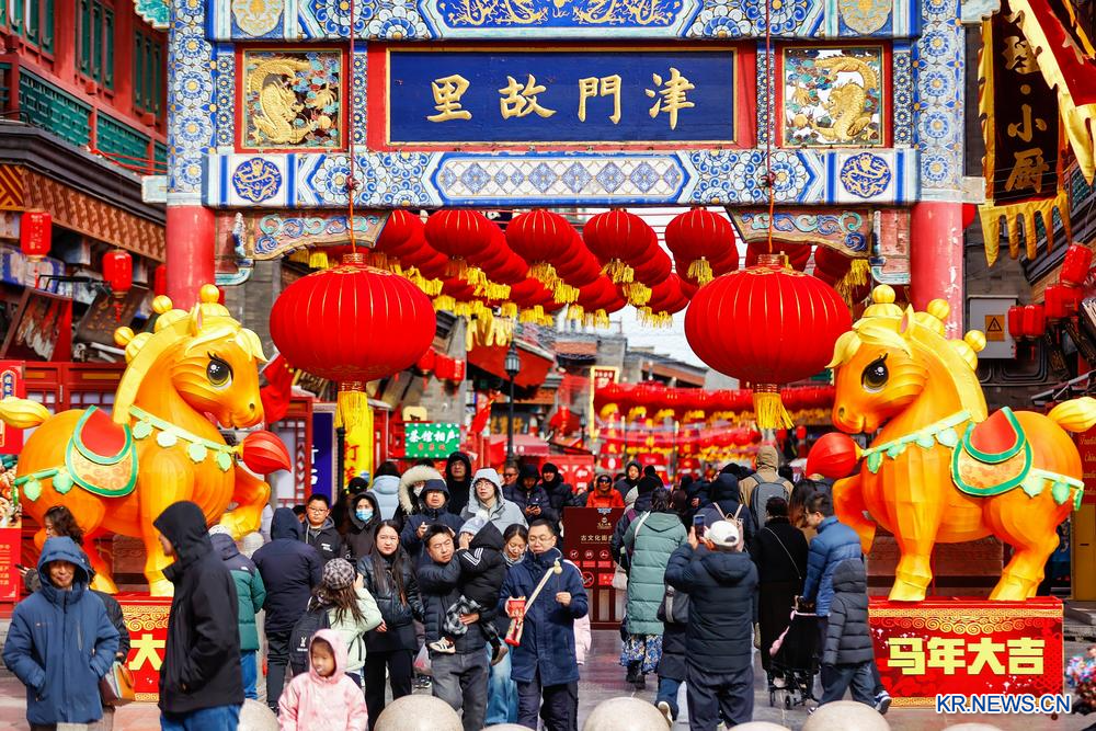 [신화망 중국 톈진 2월16일] 춘절(春節·음력설)을 앞두고 톈진(天津) 고문화거리가 북적이고 있다. 사람들은 이곳에서 명절 분위기를 만끽하고 전통 민속문화를 감상하며 말의 해를 맞이하고 있다.