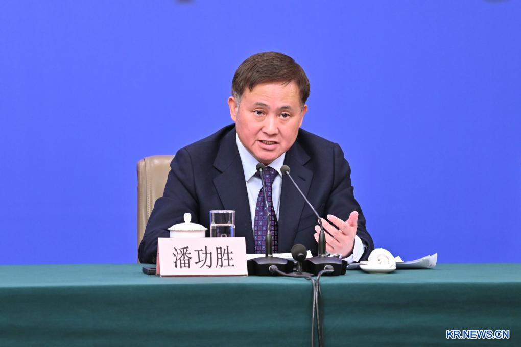 정산제(鄭柵潔) 중국 국가발전개혁위원회 주임, 란포안(藍佛安) 재정부 부장(장관), 왕원타오(王文濤) 상무부 부장, 판궁성(潘功勝) 중국인민은행 행장, 우칭(吳清) 중국증권감독관리위원회 주석은 ▷발전∙개혁 ▷재정∙예산 ▷비즈니스 ▷금융∙증권 등 관련 문제에 대해 중국 국내외 기자의 질문에 답했다.사진은 판궁성 행장이 기자의 질문에 대답하고 있는 장면.