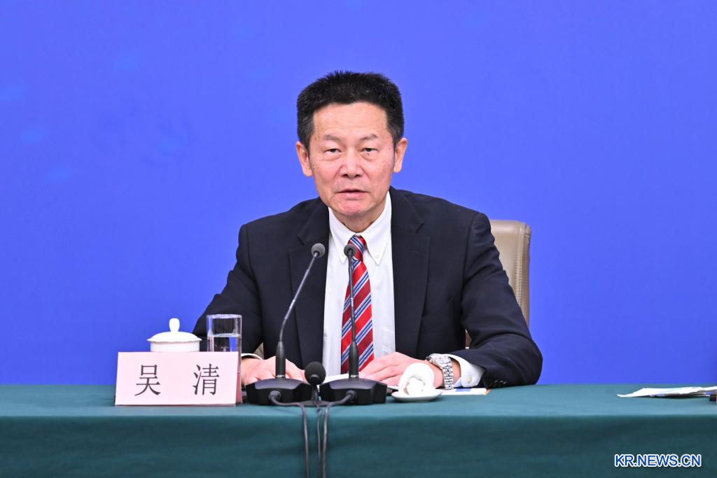 정산제(鄭柵潔) 중국 국가발전개혁위원회 주임, 란포안(藍佛安) 재정부 부장(장관), 왕원타오(王文濤) 상무부 부장, 판궁성(潘功勝) 중국인민은행 행장, 우칭(吳清) 중국증권감독관리위원회 주석은 ▷발전∙개혁 ▷재정∙예산 ▷비즈니스 ▷금융∙증권 등 관련 문제에 대해 중국 국내외 기자의 질문에 답했다.사진은 우칭 주석이 기자의 질문에 대답하고 있는 장면.pagebreak
