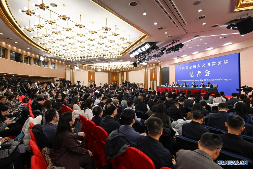 제14기 전국인민대표대회(전인대) 제4차 회의 기자회견이 6일 베이징 메이디야(梅地亞)센터 프레스룸에서 열렸다.