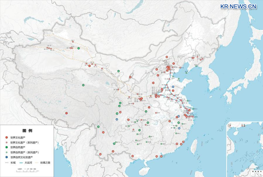 위안지밍(袁繼明) 중국 국가임업초원국 자연보호지관리사(司) 사장(국장)은 "분포도를 보면 세계자연유산과 세계자연문화유산이 동남 해안에서 칭짱고원, 서북 사막에 이르는 산악·산림·초원·호수·습지·사막·해안대 등 다양한 생태계에 폭넓게 분포하고 있다"고 말했다.