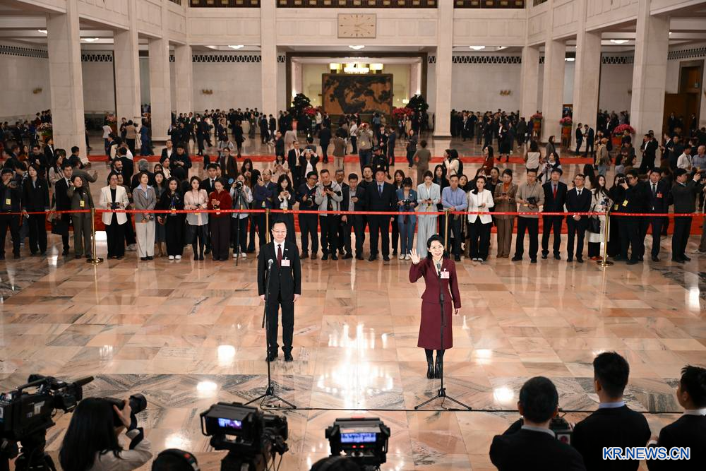 中 전인대 세 번째 '대표 통로' 집중 인터뷰, 베이징 인민대회당서 열려-Xinhua