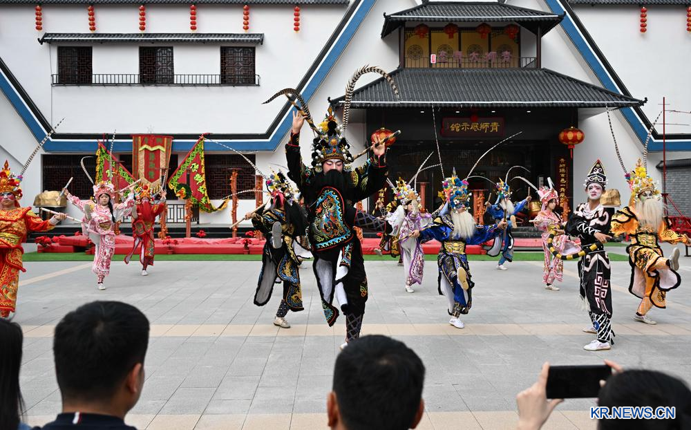 10일 제양고성 사자춤 전시관을 찾은 관광객들이 영가무(英歌舞·광둥 푸젠 등 남부 지역의 전통 민간 춤) 공연을 관람하고 있다. 2026.3.11
