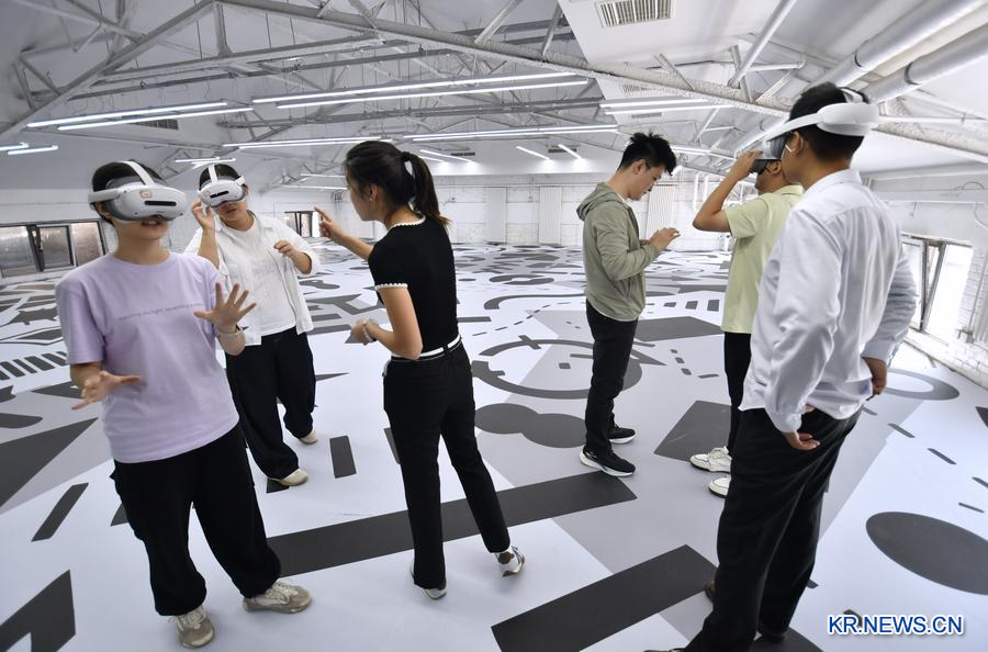 지난해 9월 19일 베이징시 펑타이(豐台)구에 위치한 지자먀오(紀家廟) 솽창(雙創)산업단지에서 사람들이 가상현실(VR) 제품을 테스트하고 있다. (사진/신화통신)