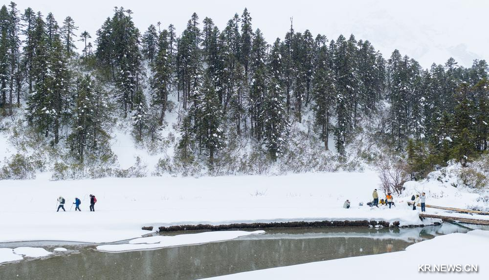 [신화망 중국 린즈 3월22일] 3월 하순에 접어들었지만 시짱(西藏)자치구 린즈(林芝)시 보미(波密)현에 위치한 바이푸룽거우(白普隆溝) 목장은 여전히 흰 눈으로 뒤덮여 있다. 고원의 설경을 즐기려는 관광객들의 방문이 잇따르고 있다.