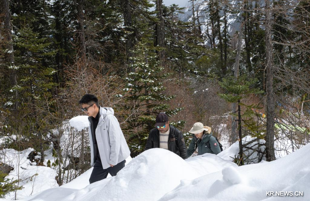 3월 하순에 접어들었지만 시짱(西藏)자치구 린즈(林芝)시 보미(波密)현에 위치한 바이푸룽거우(白普隆溝) 목장은 여전히 흰 눈으로 뒤덮여 있다. 고원의 설경을 즐기려는 관광객들의 방문이 잇따르고 있다.