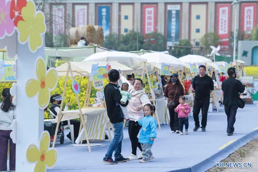 저장(浙江)성 젠더(建德)시 겅로우(更樓)가도(街道·한국의 동)의 한 유채꽃밭 인근에서 열린 플리마켓. (사진/신화통신)