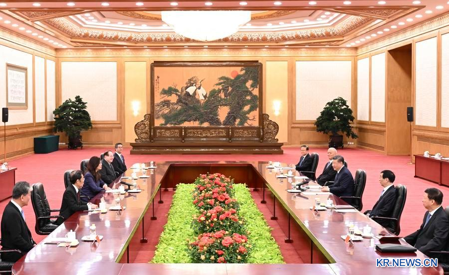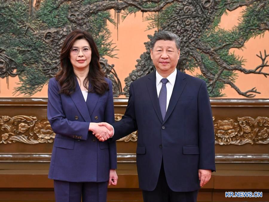 [신화망 베이징 4월10일] 시진핑(習近平) 중국공산당 중앙위원회 총서기가 10일 오전 베이징에서 정리원(鄭麗文) 중국국민당 주석이 이끄는 국민당 방문단과 회견했다.