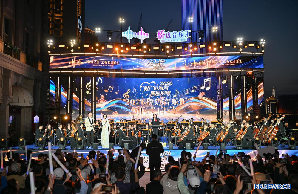 [신화망 중국 톈진 4월20일] '2026 하이허(海河)의 밤 교량변 음악회'가 18일 톈진(天津)시에서 개막했다. 2년째 열리고 있는 이번 음악회는 오는 10월까지 다채로운 공연 행사가 이어질 예정이다.