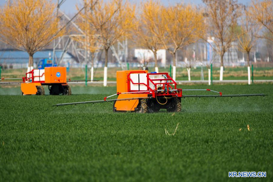 페이청(肥城)시 와리(窪里)촌의 무인 스마트 농장에서도 비슷한 풍경이 펼쳐지고 있다. 왕신원(王新文) 농장 기술자는 태블릿 PC로 농약 살포 로봇을 조작해 농지에서 작업을 수행하고 있다. 스크린에는 로봇이 전송한 실시간 농지의 모습이 선명하게 보인다. 화면을 통해 밀 모종의 색깔, 토양의 건습 상태는 물론 잎의 벌레 먹은 곳까지 확대해서 볼 수 있다.