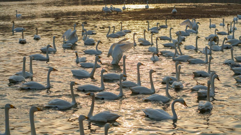 中 랴오닝성 차오양, 다링허 강변서 펼쳐진 백조의 '군무'