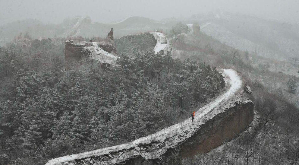 中 판룽산장성, 한 폭의 그림 같은 은빛 설경