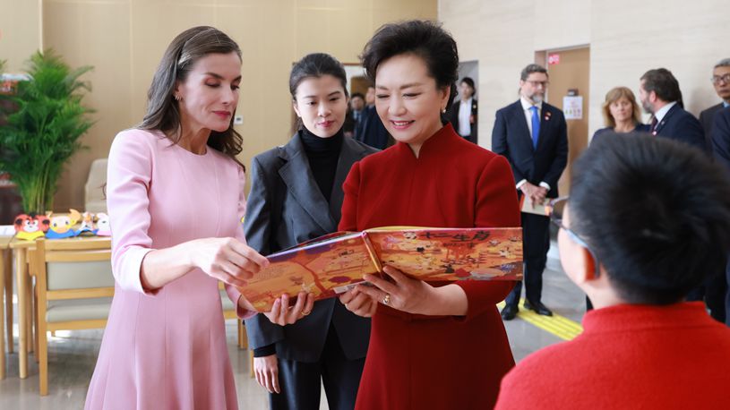 펑리위안 여사, 레티시아 스페인 왕비와 베이징시 장애인서비스시범센터 방문