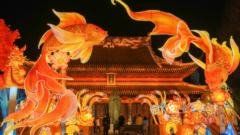 새해 맞아 화려한 등불 밝힌 中 난징 푸쯔묘 대성전