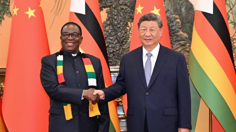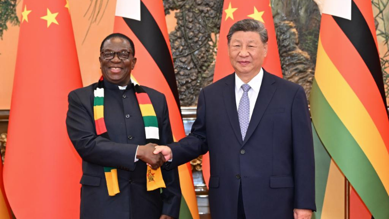中 시 주석, 에머슨 음낭가과 짐바브웨 대통령 회견